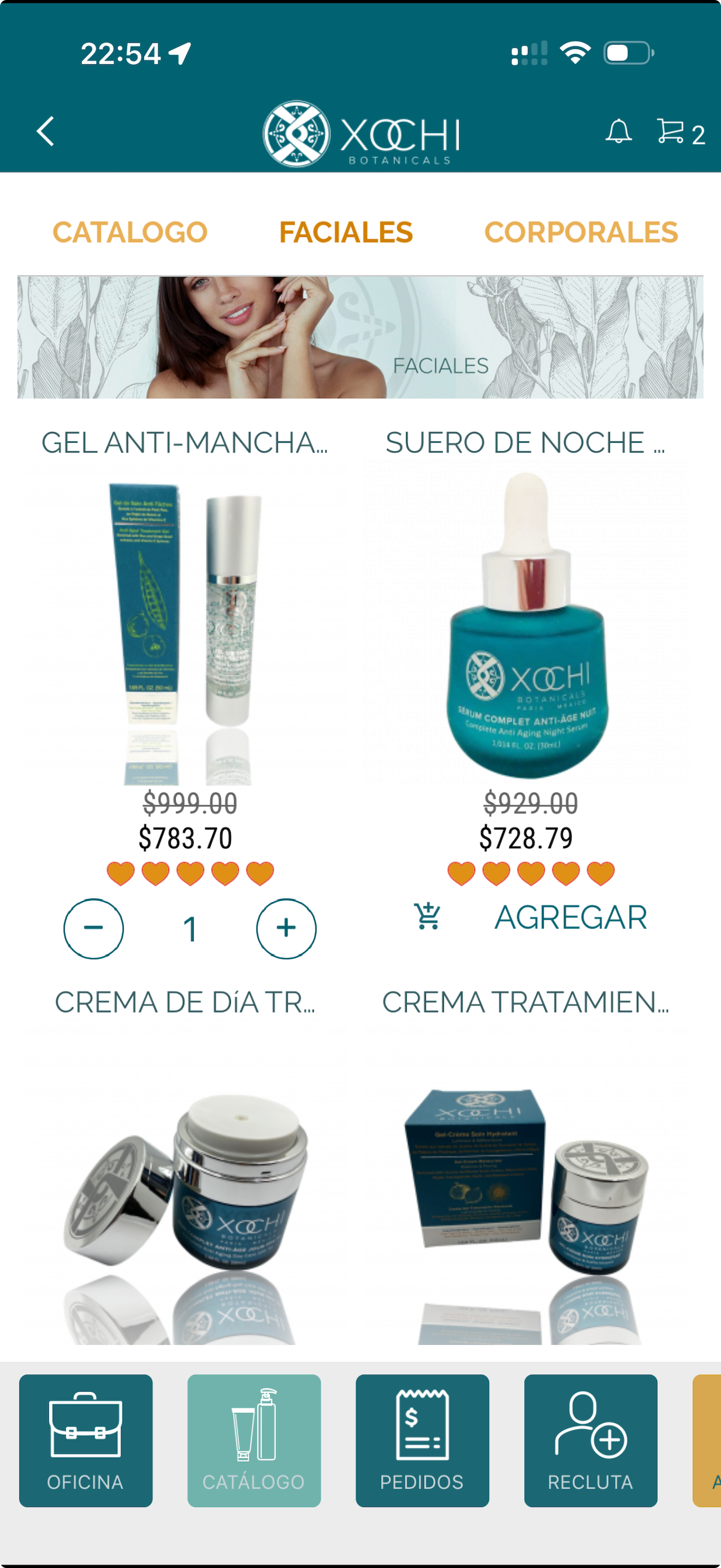 We built Xochi App using React Native, delivering a cross-platform native experience with a full product catalog featuring search and category filters, an integrated shopping cart with checkout flow, and a direct sales management system tailored for distributors.